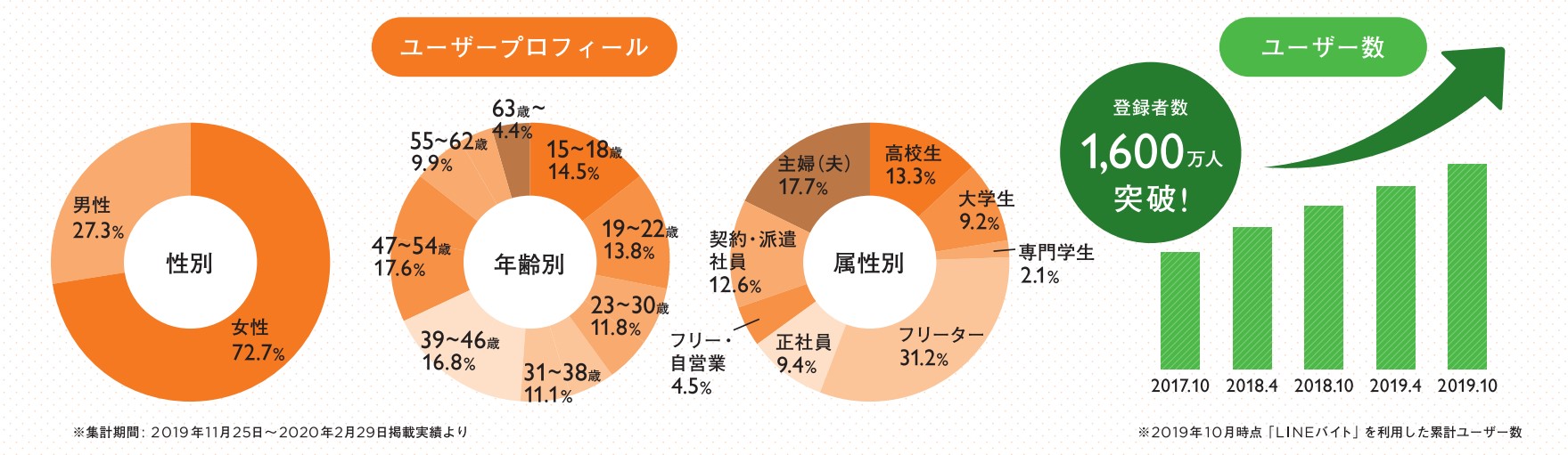 LINEバイトからアルバイトに応募する人の属性について、2020年時点での最新情報がまとめられています!