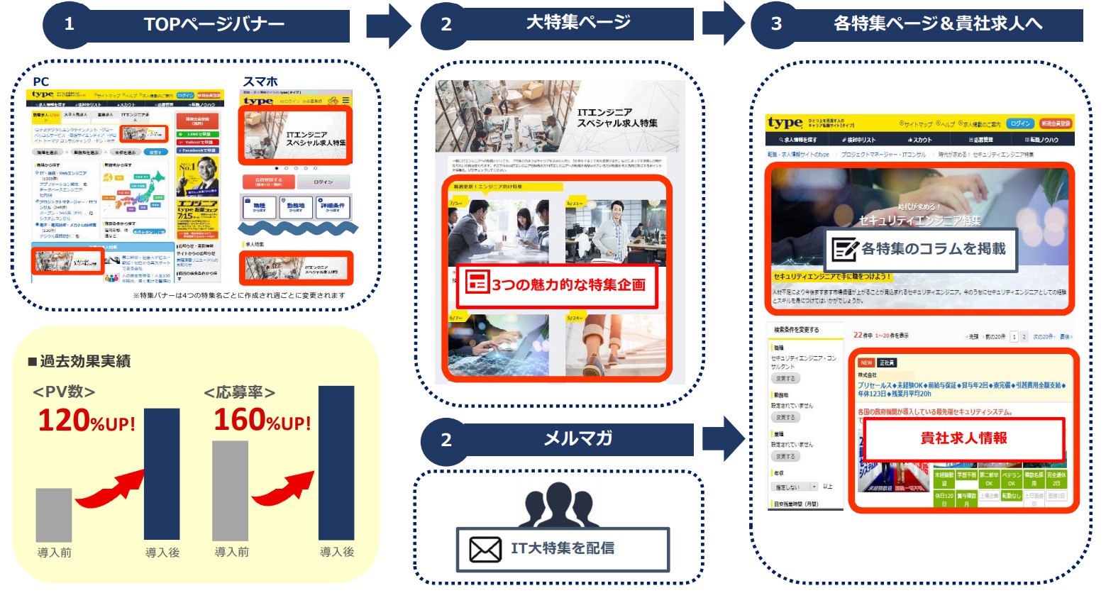 TOPページでの高い露出とメルマガ配信によるアプローチで、貴社求人情報への導線を強化