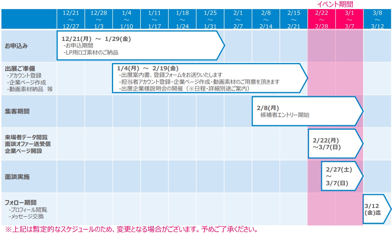 ※事前に企業様アカウント登録や専用ページのご準備、オファー送受信期間などがございます。