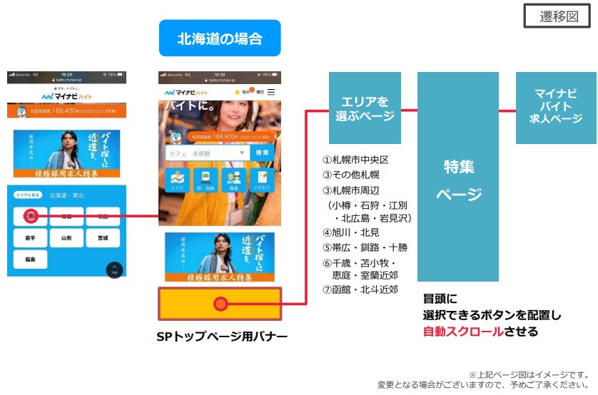 上記の期間中、対象エリアいずれかのマイナビバイトページに、