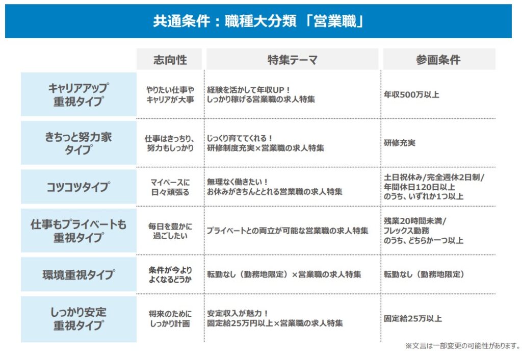 ⚫ 対象求人:「営業職」の募集をしている求人