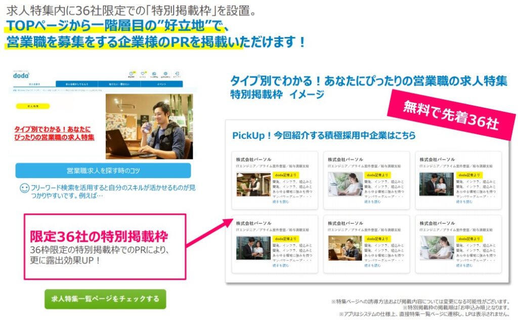 【doda】≪先着36社≫ 無料参画:4月営業職 スペシャル求人特集LP枠