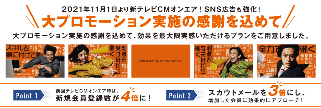| プレミアムプラン | 勤務地に[東京]を含む場合 | 80万円 | スカウトメール 1200通 | |