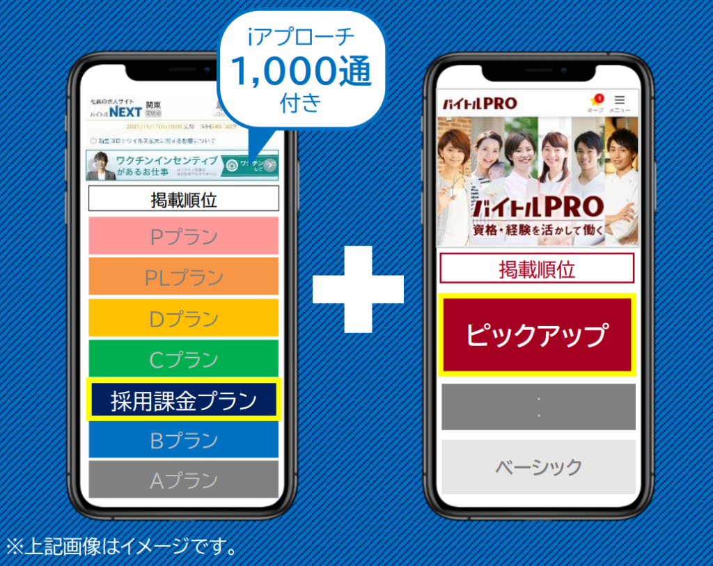 バイトルNEXT、バイトルPROをセットで以下の位置にご掲載いたします。