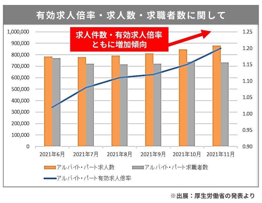 また、昨年末から有効求人倍率が上がっている=採用の難易度も上がっております。各アルバイトメディアでも色々な媒体に求人を掲載されることもあるかと思います。各社CMやSNS等でプロモーションを盛大にかけていく予定です。