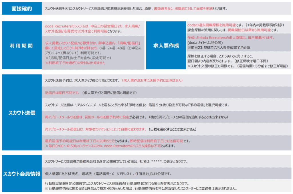 原稿作成は全て貴社にて行っていただきます。貴社の企業情報・求人情報は原則dodaサイト上へは掲載されません。