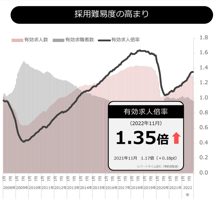 採用難易度の高まり、人材獲得競争の激化