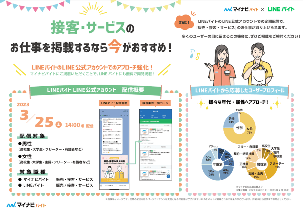終了|【LINEOA配信×マイナビバイト】接客・サービスのお仕事特集