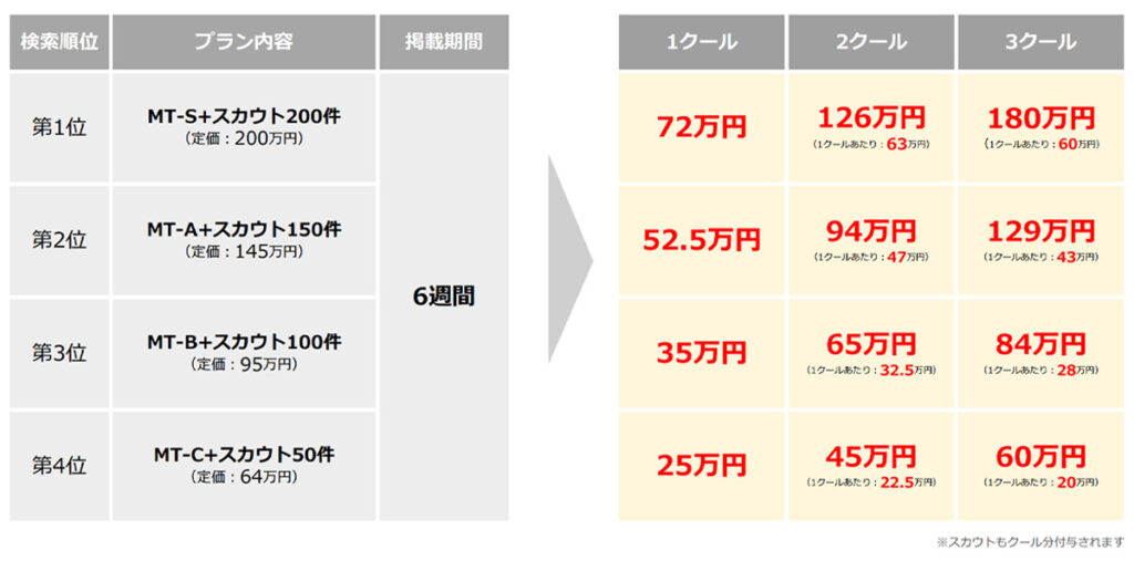 MT-S~MT-C企画が1クールあたり通常4週間掲載 → 6週間掲載できるキャンペーン