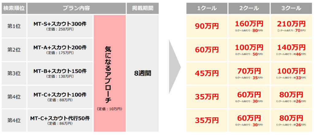 MT-S~MT-C企画が1クールあたり通常4週間掲載 → 8週間掲載できるキャンペーン