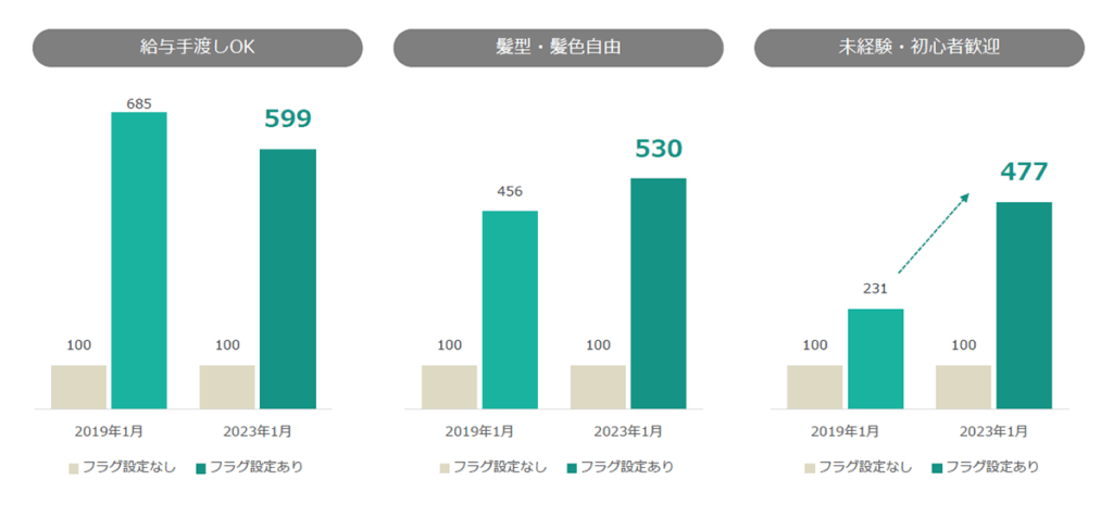 給与手渡し/髪型自由/未経験歓迎への需要増加