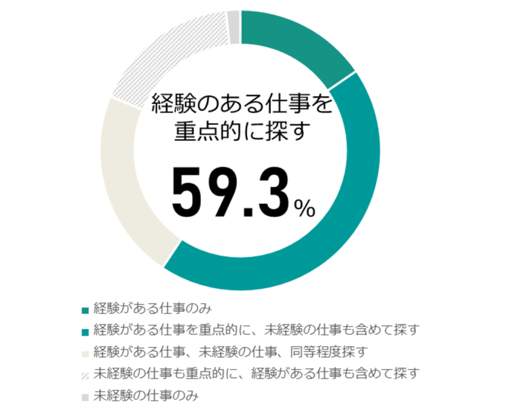 アンケート結果では、経験がある仕事を優先しつつ、未経験の仕事も探している人が多い。