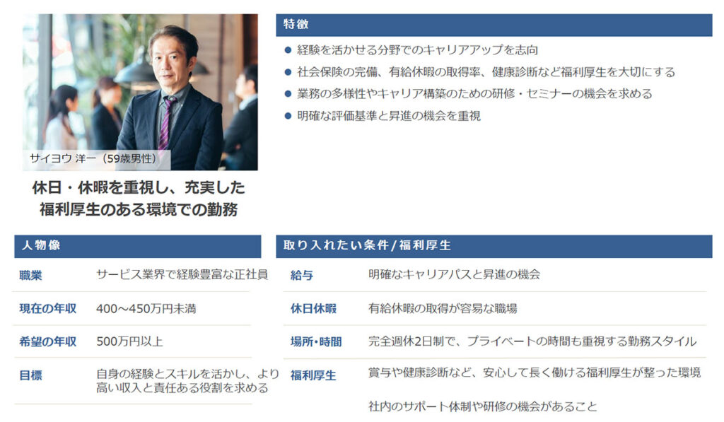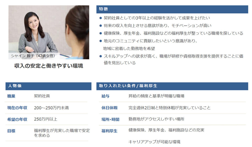 特にシフトや1 日 のスケジュールなどの 「 勤務時間 」、「 賞与 の 有無 ・回数」について分かりやすく、詳細に記載があることで、応募のハードルが下がります。