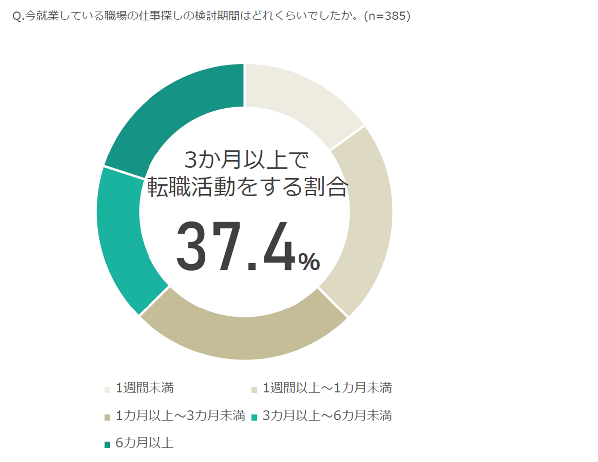 約4割が3か月以上、仕事探しの検討期間を設けています。