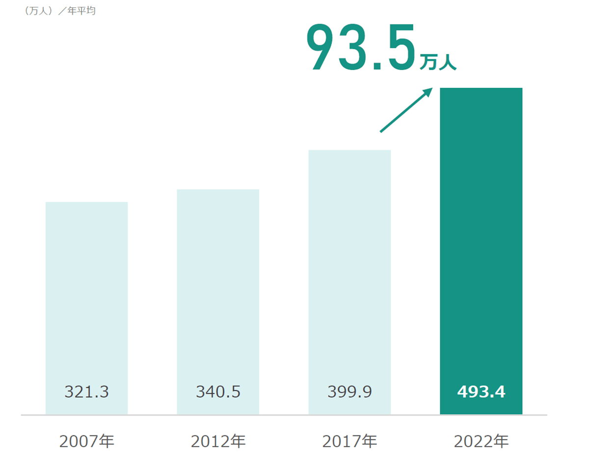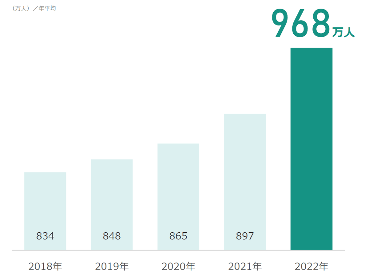 その後2022年は3年ぶりの増加。さらに転職等希望者数は年々上昇し、900万人超え。