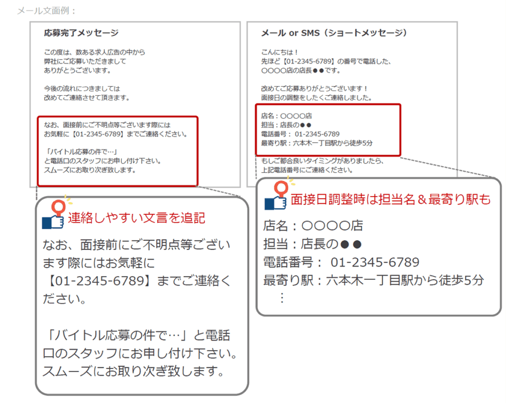 「店長から折り返しの連絡もらったとき「応募していただいた●●さんですか?」と聞いてくれて、印象良かった。」