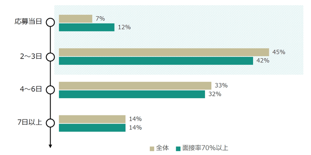 半数以上が応募から3日以内に面接日を決定する企業が多いため、応募後の連絡や面接日の調整をどれだけ早くできるかが重要になります。