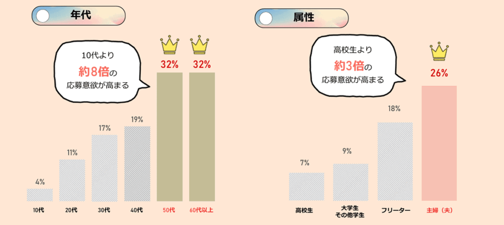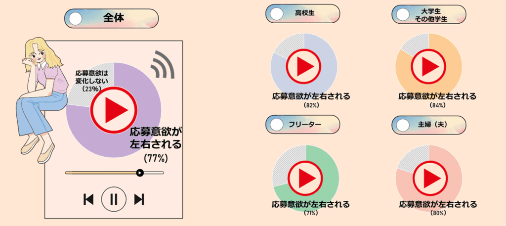 属性別でみると応募意欲が高まる動画内容に差が出る結果となりました。