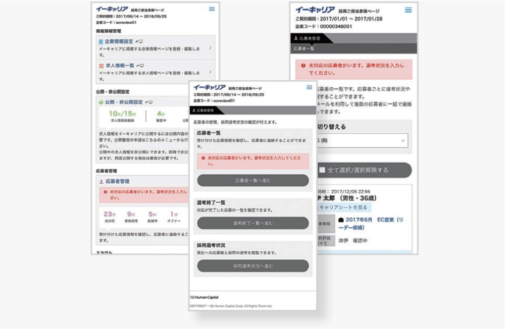 応募者管理機能がスマートフォンに完全対応