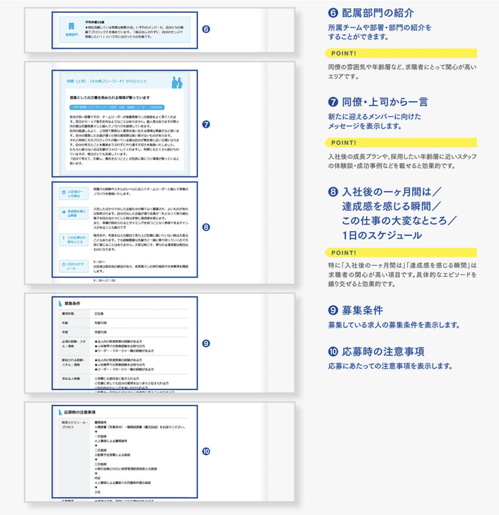 シンプルなデザインかつ充実の情報量で、貴社の求人や魅力をPRできます。