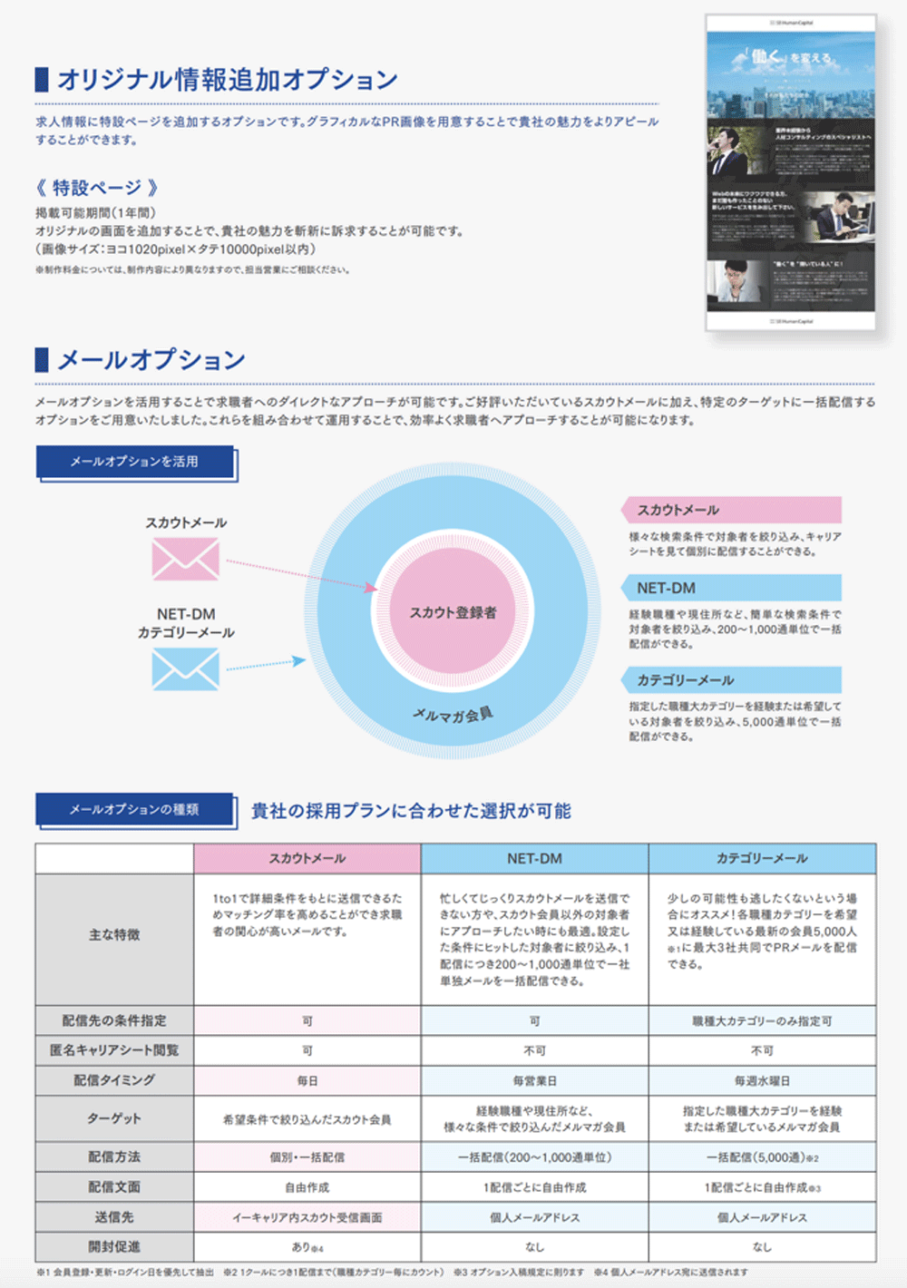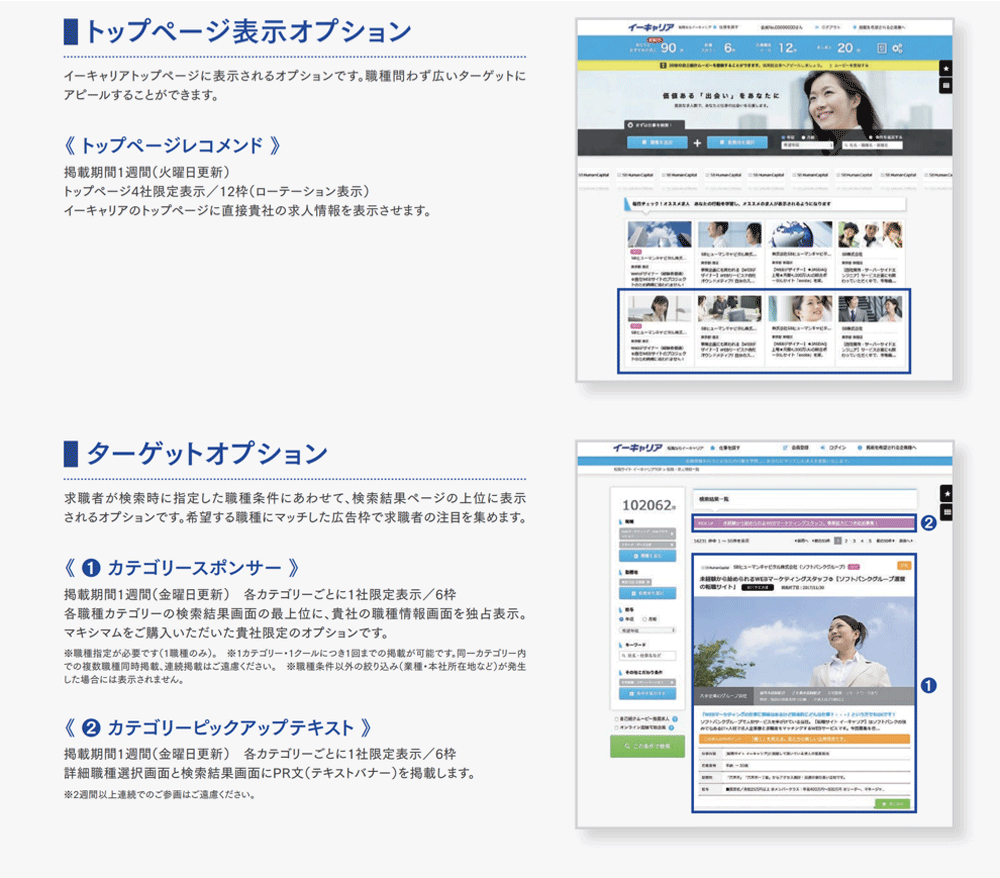 希望する人材に効果的にアプローチするオプションが揃っています。
